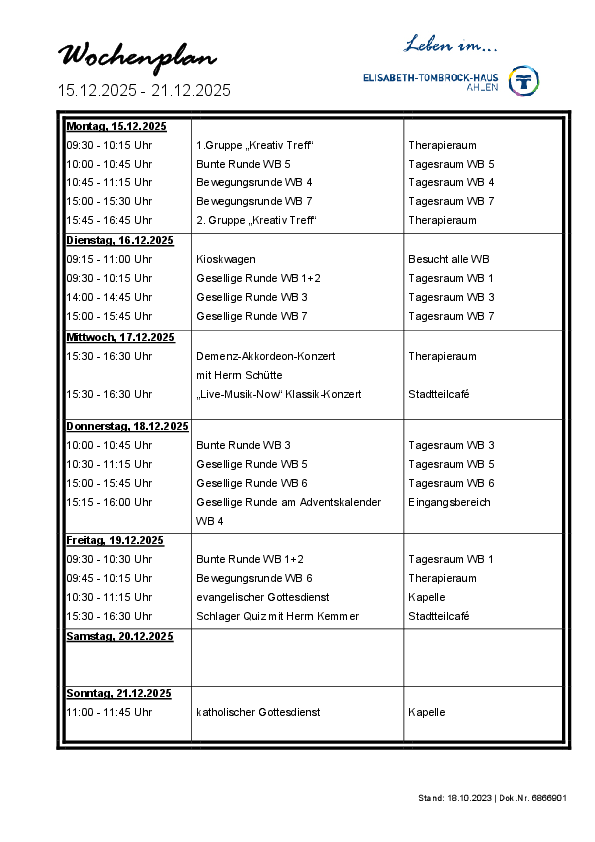 Die Termine für unsere hauseigene "Kochschau" finden Sie regelmäßig in unserem Wochenplan.