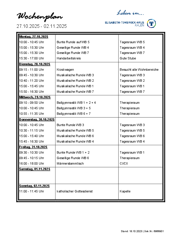 Die Termine für unsere hauseigene "Kochschau" finden Sie regelmäßig in unserem Wochenplan.