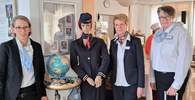 Chefpilotin der Elisabeth-Tombrock-Airlines, Silvia Keggenhoff, den Startschuss zum Boarding mit ihren Stewardessen , Andrea Kontek und Andrea Berkemeierl und mit Matthias Harman als Vize-Bürgermeister zum Flug „Rund um die Welt ein.