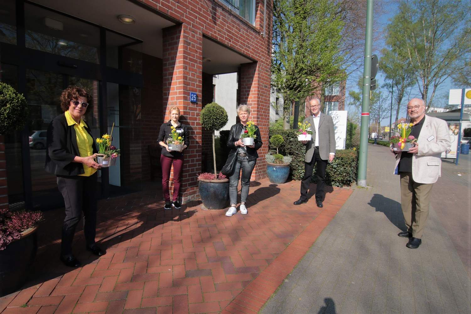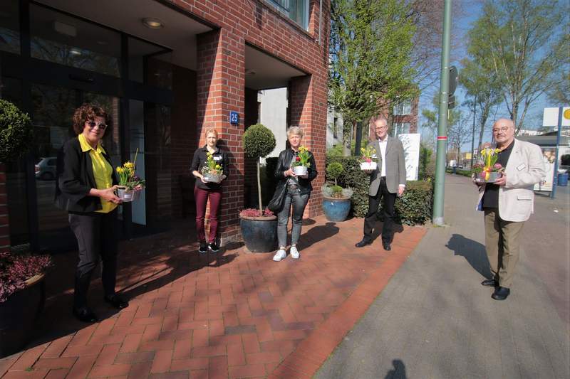 So wurden die Stadtwerke über einen Artikel in dieser Zeitung auf die Umsatzeinbußen der Gärtnerei Schulze Eckel aufmerksam und wollten dem Unternehmen nach dem Motto „Kauft Blumen, nicht (nur) Toilettenpapier“ beistehen. Im Auftrag des städtischen Tochterunternehmens stellte die Gärtnerei daraufhin 70 bunte Blumenarrangements zusammen. „Wir wollen andere nicht vergessen“, war Dr. Alfred Kruse die Symbolik der Spendenaktion sehr wichtig und er dankte auch der Gärtnerei für ihren spontanen Einsatz. Er sagte zugleich zu, die Einladung anzunehmen, das Elisabeth-Tombrock-Haus mit seinen Gärten zu einem späteren Zeitpunkt zu besuchen.