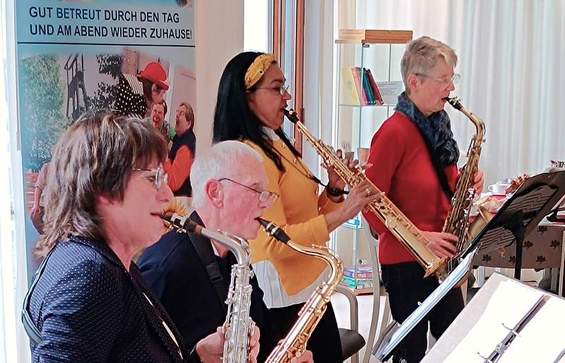Es sind begeisterte Musiker aus Ahlen, die sich zusammengefunden haben und mit den Klängen ihrer Saxofone ein buntes musikalisches Angebot im Stadtteilcafé des Hauses zu Gehör brachten: von „Habanera“ aus der Oper Carmen von Georges Bizet über „Yesterday“ von den Beatles bis hin zu „Glühwürmchen flimmere“ aus der Operette Lysistrata von Paul Lincke.