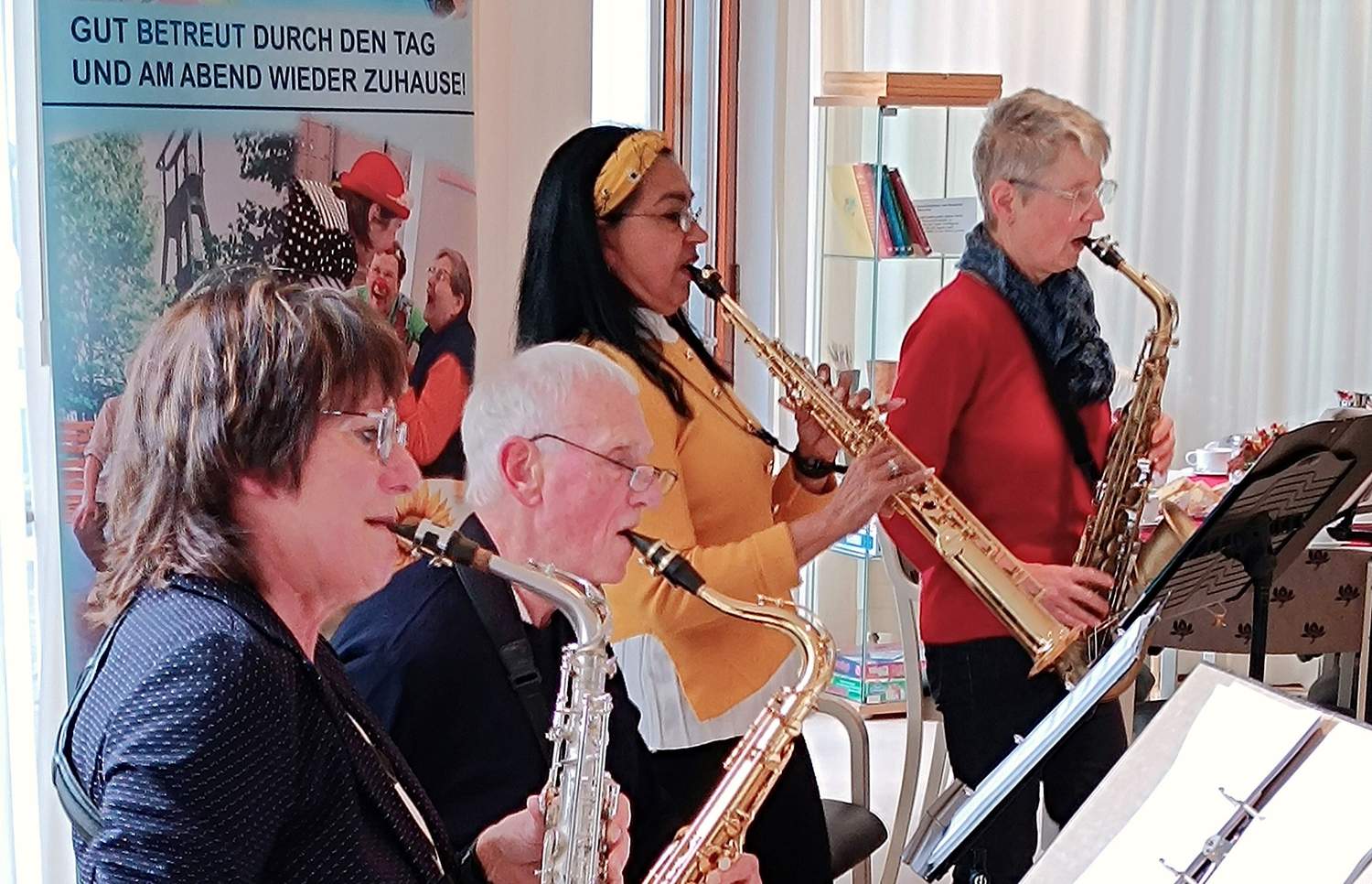 So freute sich Doreen Bothe, stellvertretende Sozialdienstleiterin und Organisatorin der Veranstaltungen im Tombrock-Haus, dass dieser musikalische Auftritt mit der Saxofongruppe „Voices of Sax“, unter Leitung von Susanne Harwardt, fortgesetzt werden konnte.